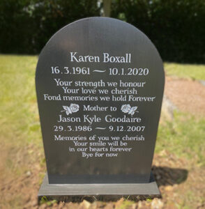 Slate is an ideal material for memorials due to its hardness, which makes it durable with low porosity. This means that some of the impacts of weathering that you will see on other stone types, such as erosion or the growth of algae, do not occur.